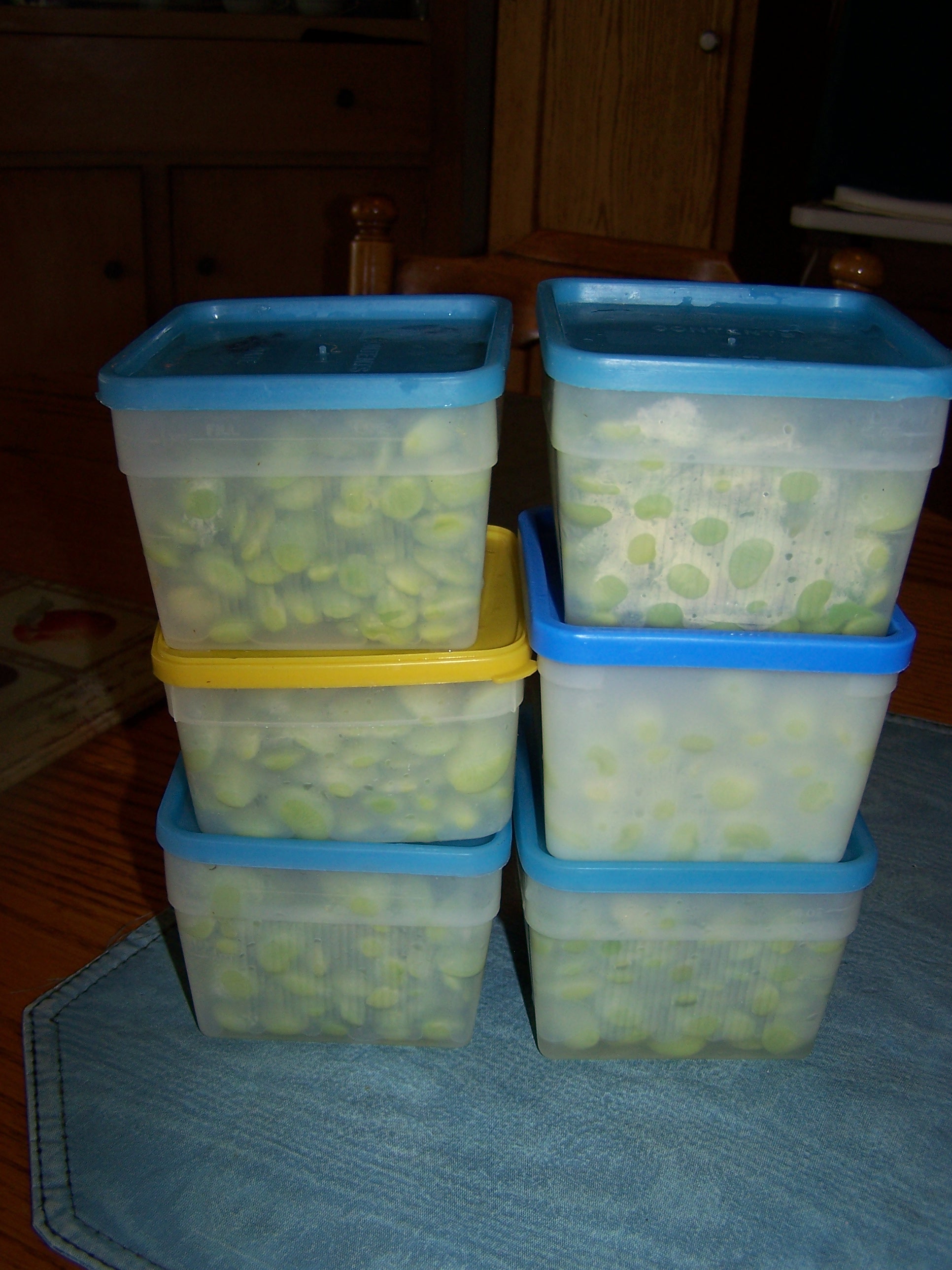 Put 2 quarts of water in the pressure canner. I add 1 tsp. cream of tarter to the water to keep the aluminum inside of the canner shiny and clean looking.