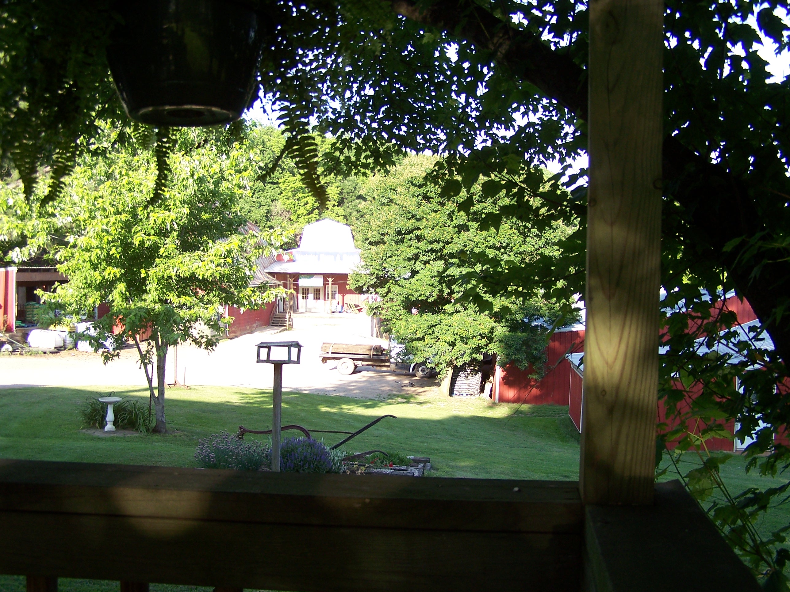 A busy 4-lane highway buzzes by our farm.  But you pull into our lane and it is pure tranquility.  In the summer,  flowers are blooming,  horses and Angus cattle are grazing in the rolling  pasture land and dust billows as you make your way back to the homestead.  When you step out of the car, the hustle and bustle of Route 60 is gone.  A border collie dog comes running to greet you home, cows look up from grazing with a mouth full of grass, chickens cluck with contentment, a proud rooster crows, a buzzard glides through the sky, pigeons coo from the loft and birds chirp gleefully as they perch high in a tree.  Home!