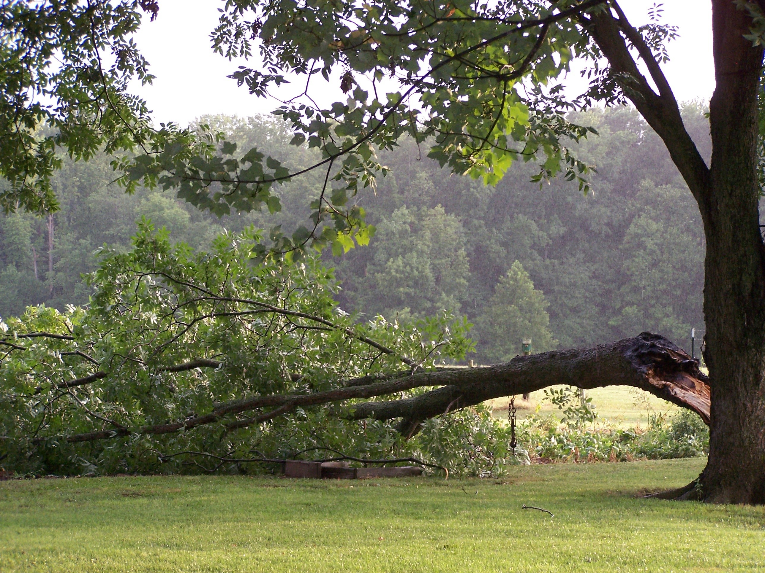 Gene came to the tree’s rescue and put a chain around the weaken trunks and tighten them together. The tree continued to withstand the storms of life, including Hurricane Isabelle in 2002. Over time the tree continued to grow and thrive causing the security chain to snap apart. We noticed what had happened to its support but put off coming to its aid.